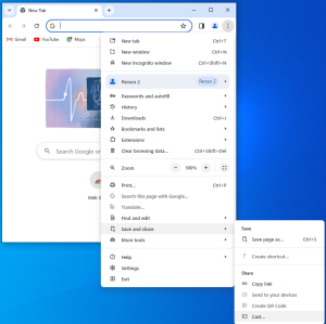 - Click on the three dots on the right side of the menu bar and select Cast